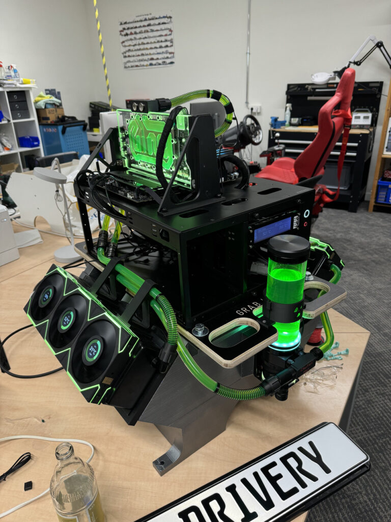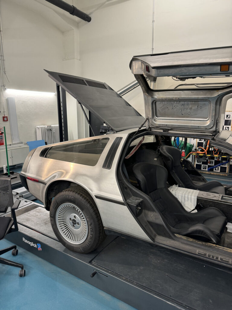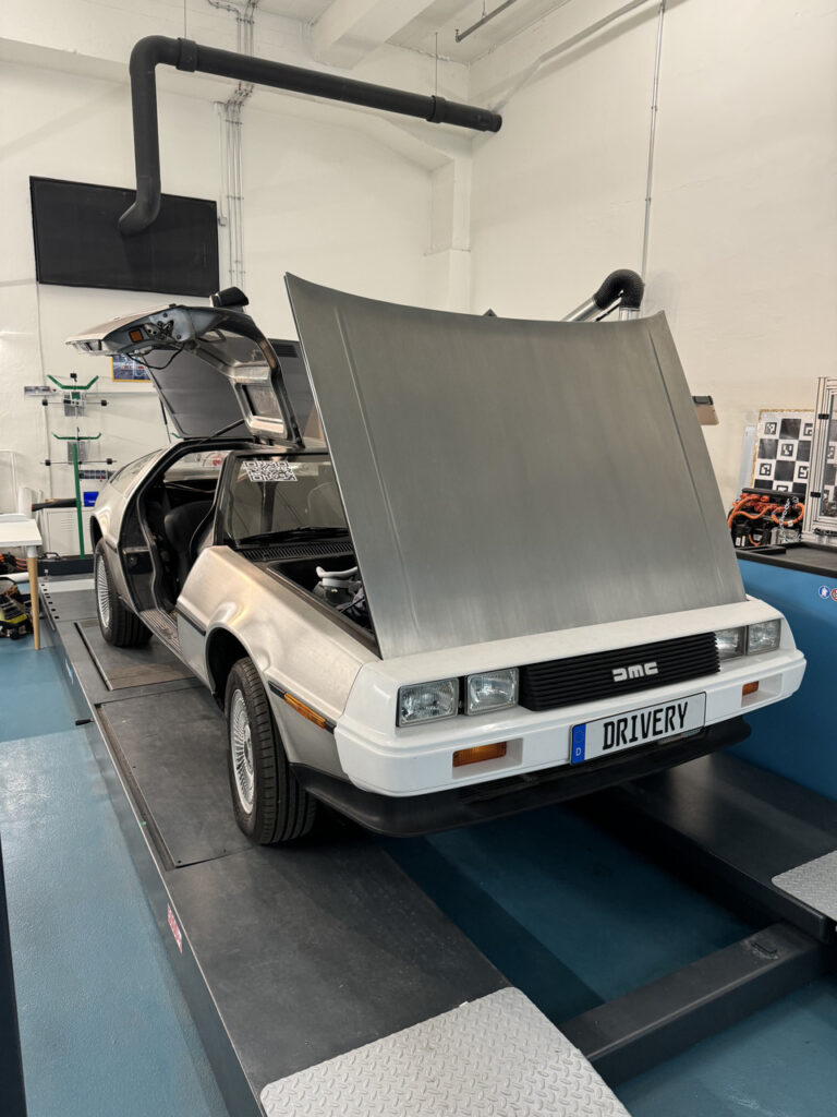 Für komplette Custom-Projekte stehen wir auch zur Verfügung und helfen mit Grenzen auszuloten. Sei es Hardware mit direkter CAN-Bus-Integration für Simulatorintegration in reale Fahrzeuge, oder – wie hier gezeigt – ein Vollausbau eines DeLorean als Showcase zum Simulatorfahren mit Rechnereinheit in einem selbstentworfenem, futuristischen Motorblock-Gehäuse.